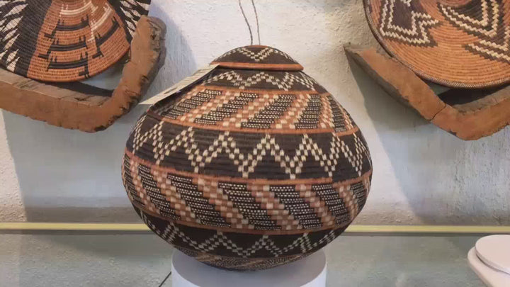 Napemba learnt basket weaving from her mother who wove patterned, bowl shaped baskets. She was ten years old before she learnt to weave a proper basket herself. Many of the women in her mother’s generation did not know how to weave patterned baskets.